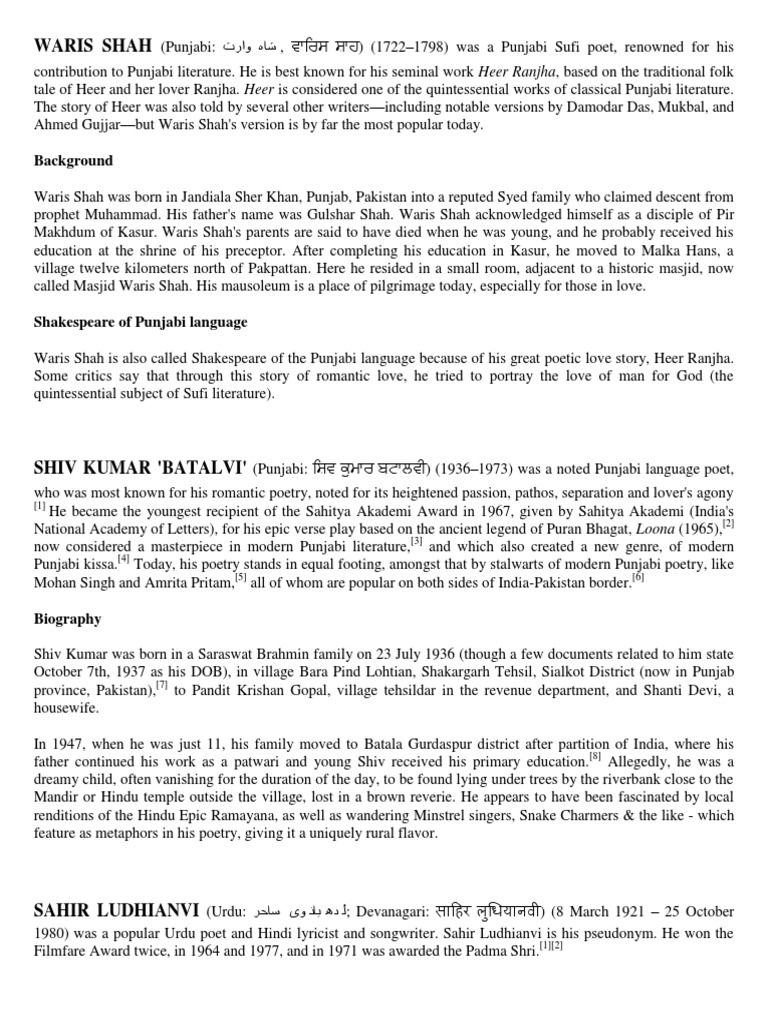 Poets And Writers Docx Punjab Poetry - Although they prefer urdu stories to other stories, they never avoid the following short stories.
