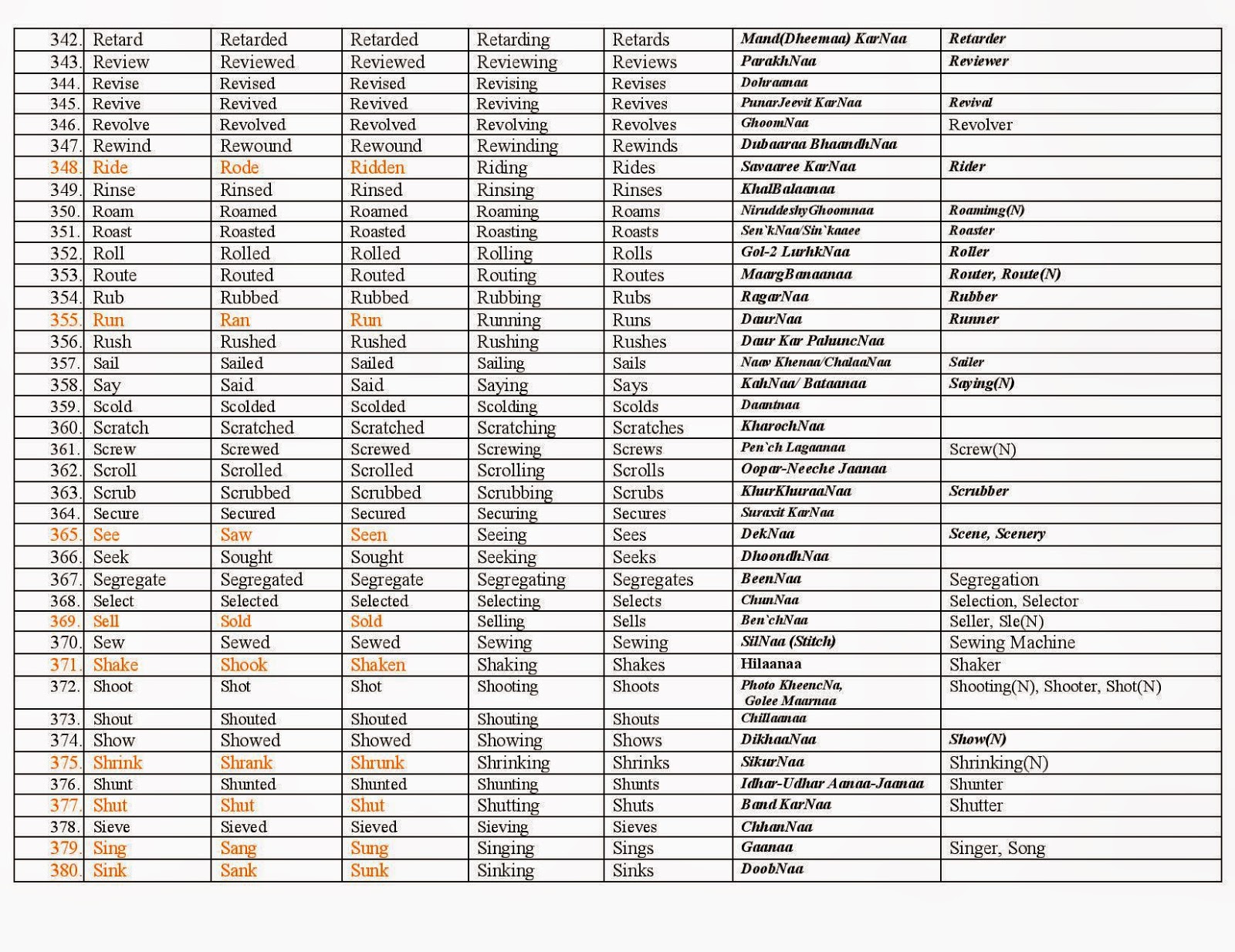 Verb Forms Meanings Notes - Know answer of question :